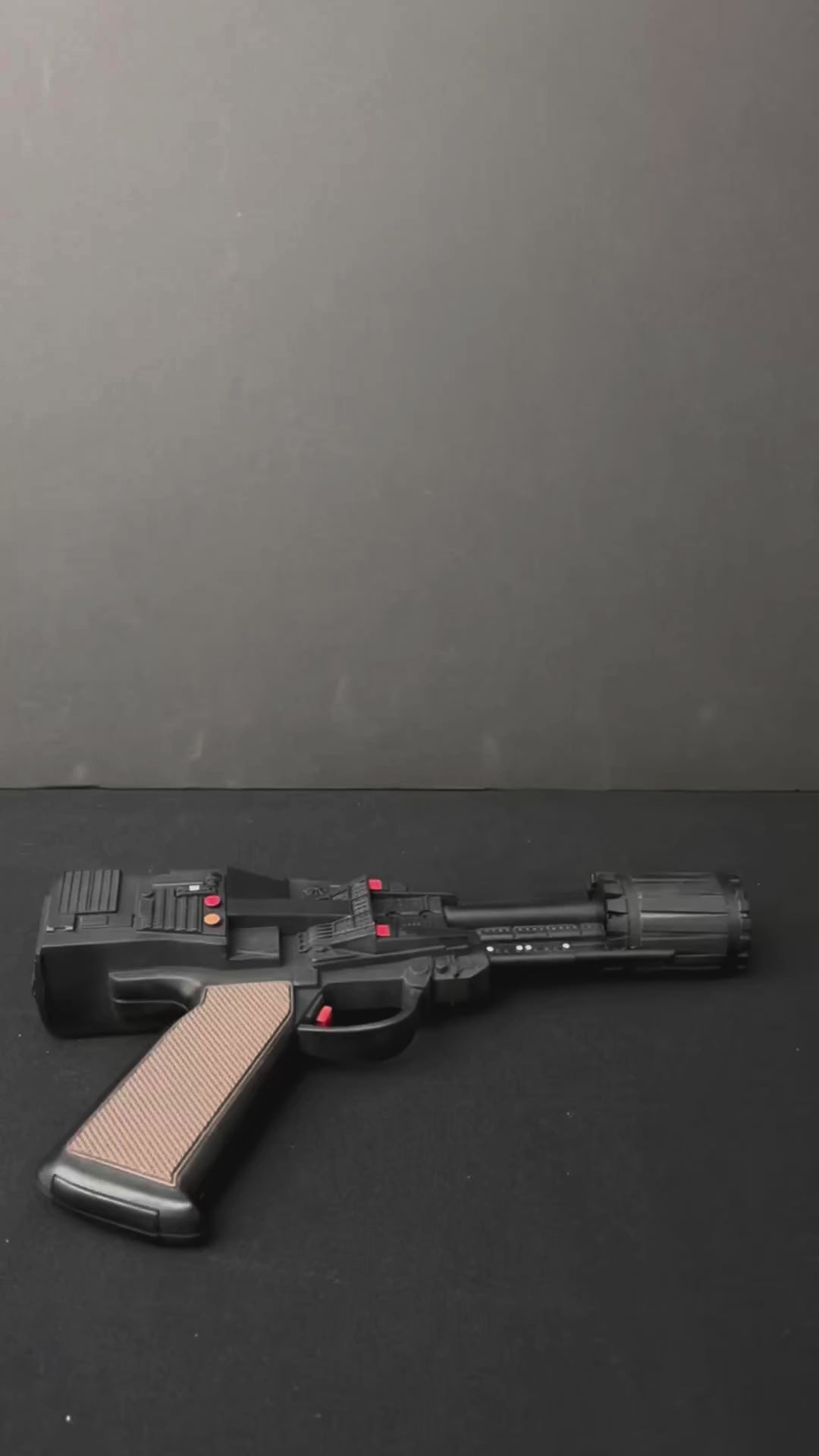 The body of the blaster is crafted from high-quality resin and features hand-painted details. The barrel is made from metal.