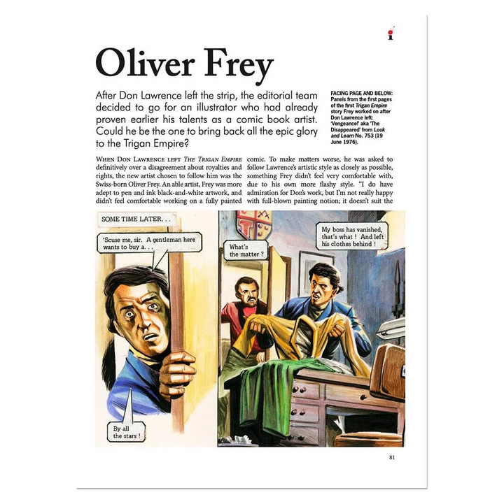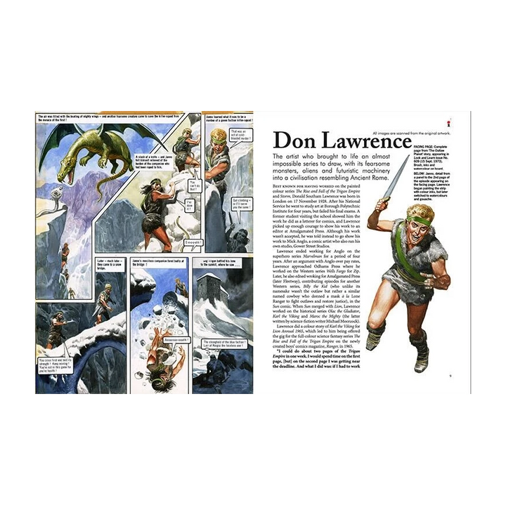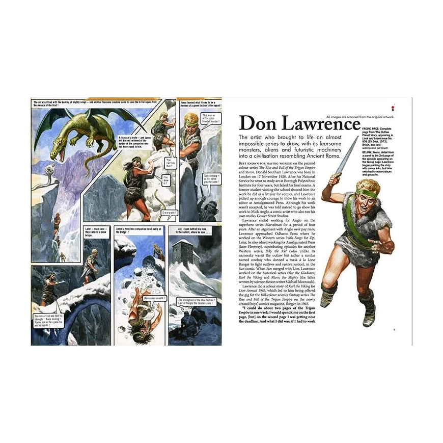 But it was mainly the absolutely stunning artwork of its initial artist, Don Lawrence, that made it such a fan-favourite. We take a close look at the artwork and feature panels in detail from the various artists who contributed to the series. The majority of the artwork was scanned from the originals and reproduced at their actual size to see the artwork in all its glorious detail.
