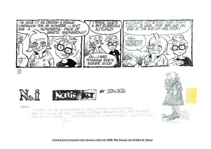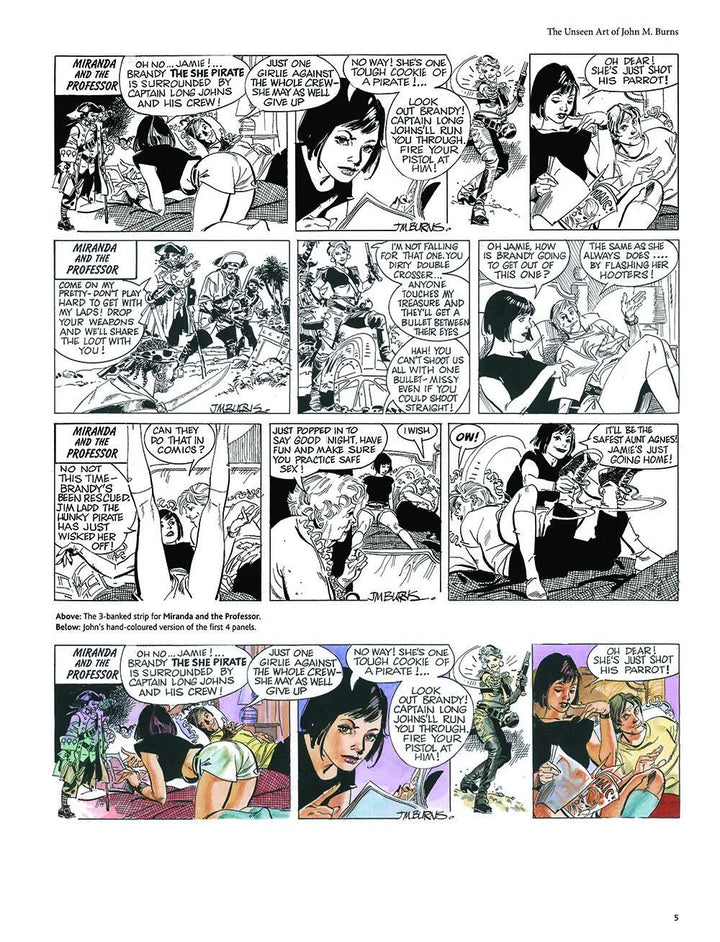 Reproducing 40 colour pages, including all 25 pages of their unfinished epic, A Surfeit of Assassins, numerous strips, sketches and roughs, this book truly reveals the unseen art of John M. Burns.