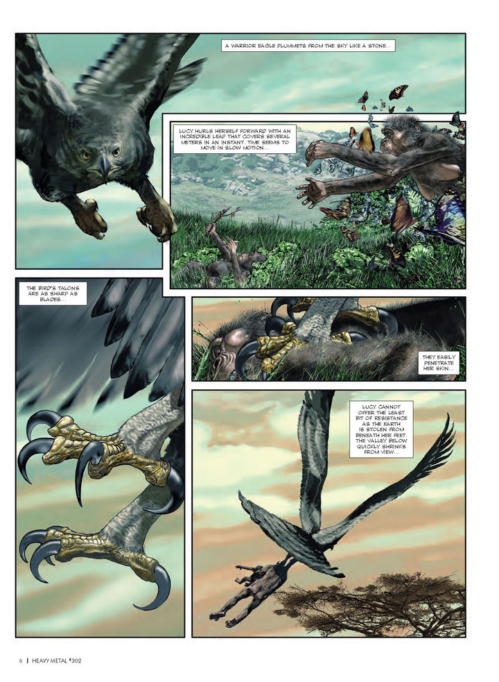 George C. Romero’s THE RISE – a prequel to the film “Night of the Living Dead” – serialization starts in this issue as well as Michelle & Bart Sears haunting tale of revenge, MAIDEN! We look at our distant past and follow Liberatore’s LUCY in an era where the ascension of the hominids had just begun. In Brendan Columbus´ SAVAGE CIRCUS Deputy Brady Harrison must navigate through a city of deranged animals, psychotic criminals, and crazed ringleader Lewis Savage to protect his citizens and save his town. Balcarce and Jok show us what happens when God dies. In the distant future, Medney’s Benedict Gunn guides the DARK WING crew in search for a new world to call home.
