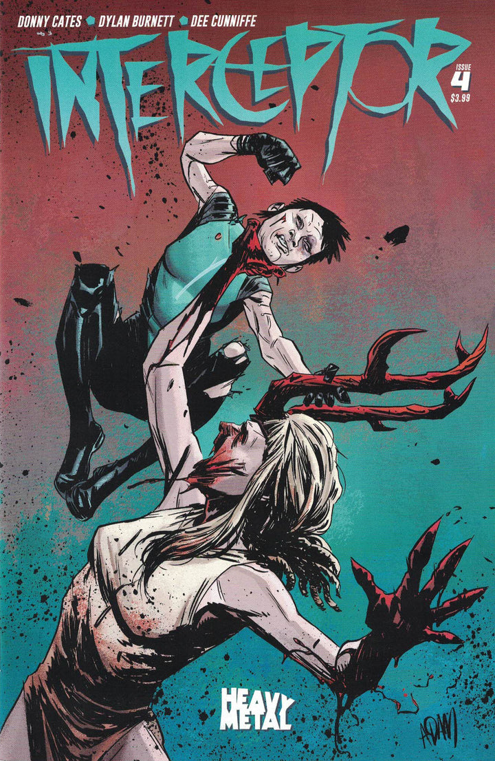 Written by Donny Cates. Art by Dylan Burnett. Cover by Adam Gorham. As Poli suits up to overthrow the vampire city of New Wallachia, Weep and her family-Hey, you know what? I'm gonna level with you here, this issue is like 90% mech suit destruction. it's insane and great and please order it. 28 pages, full color.