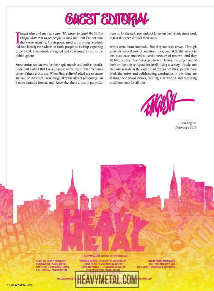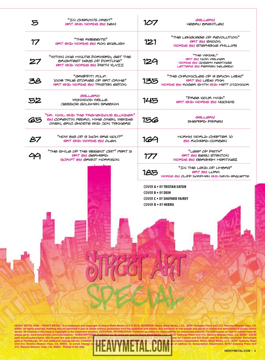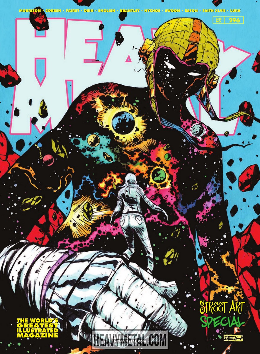 Some say that today's most innovative artists are not hunched over a desk pouring their souls out onto dead-tree or a Wacom -- but spray-painting and wheatpasting them onto walls. Don't tell them where art doesn't belong, because that's exactly where they'll take it. In this issue we speak with leading artists Shepard Fairey and Hebru Brantley, and present a thrilling tale from Tristan Eaton (all three are cover artists as well). With unconventional storytelling from other creators, plus the latest by Richard Corben and Grant Morrison, this is one you don't want to miss!