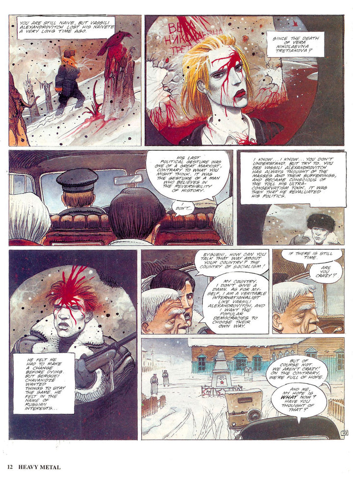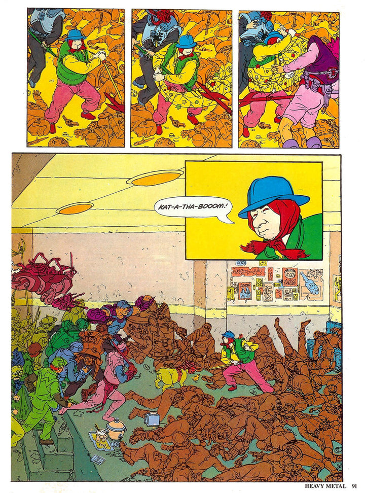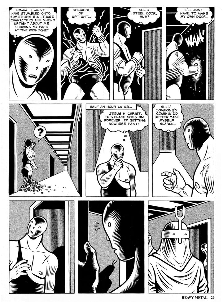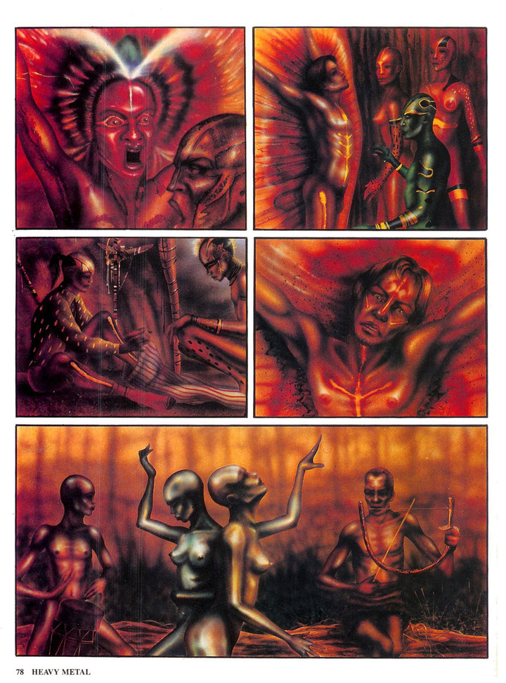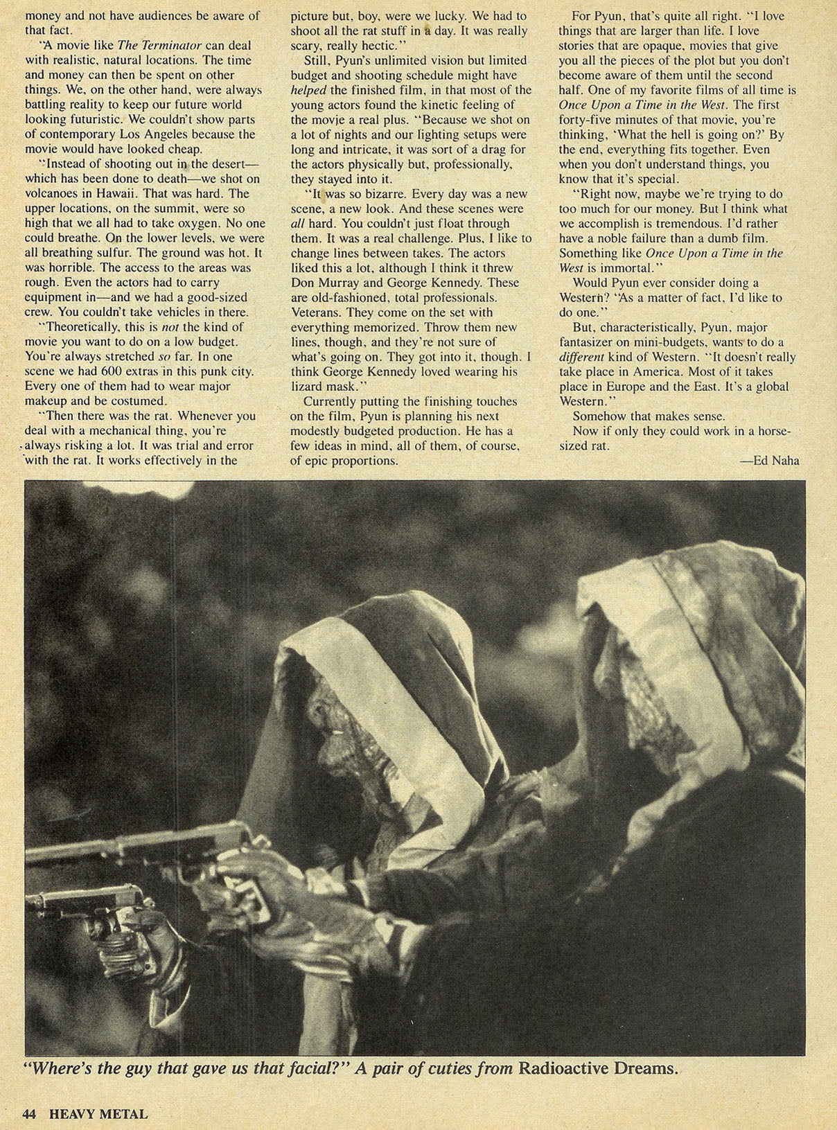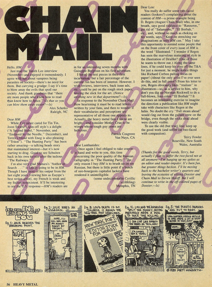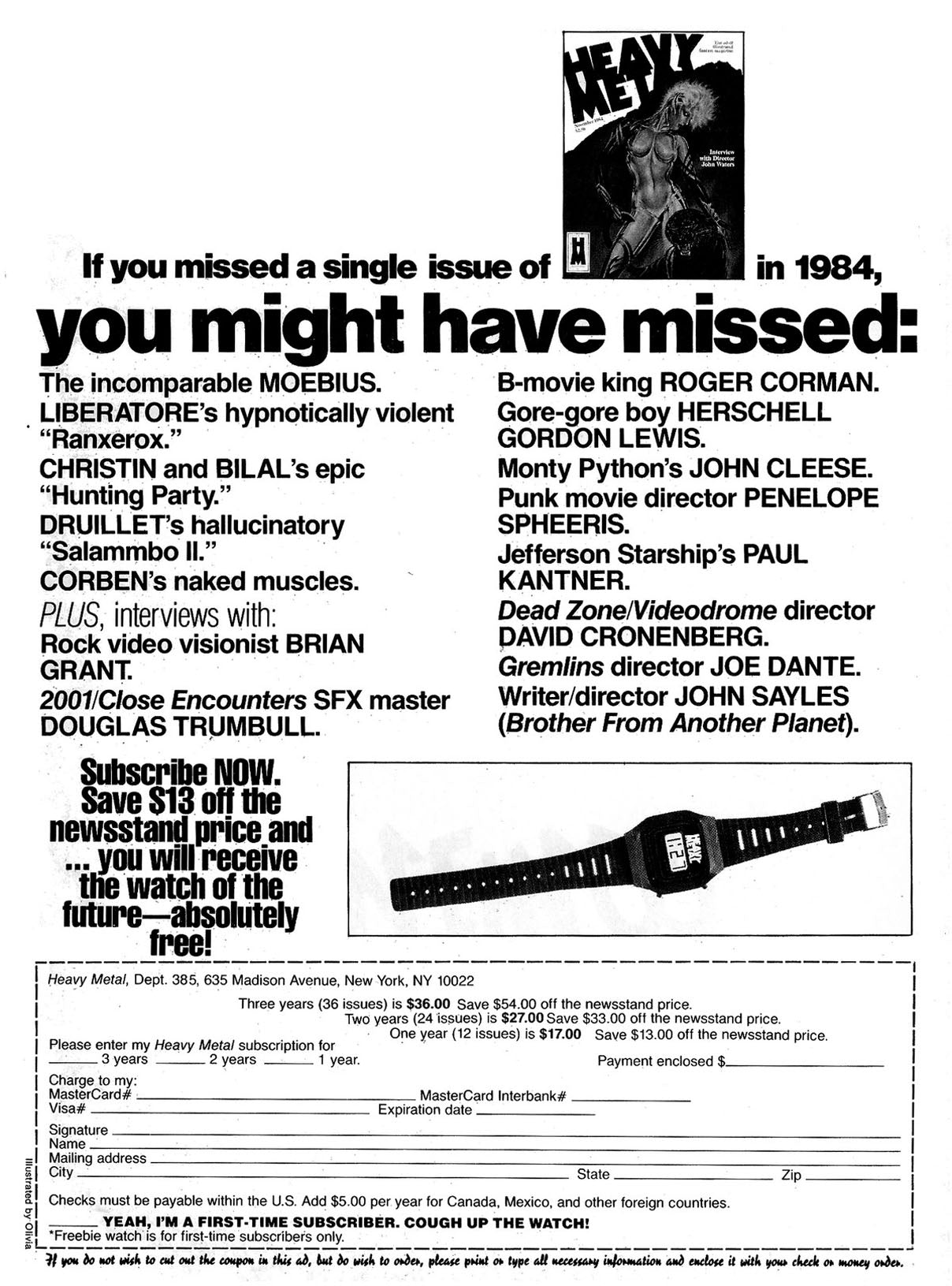 The multiple logos seen on the March 1985 issue work well with Royo's surrealistic art and make an eye-catching cover. In addition, the use of all those colorful and off-kilter Heavy metals assured that everyone seeing them knew the title of the magazine.