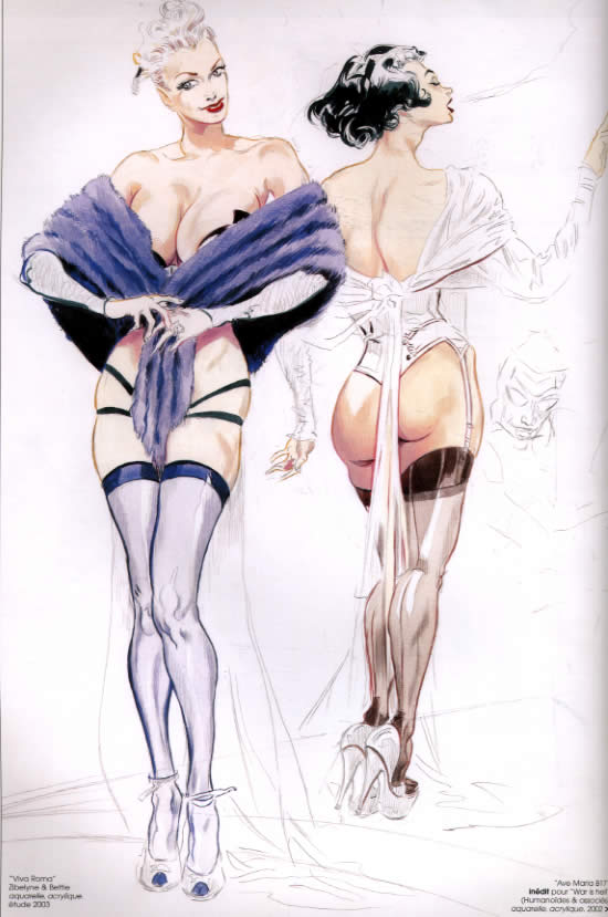 In addition to hundreds of color illustrations, this 88-page sketchbook from French cheesecake illustrator Denis Sire includes lengthy autobiographical information and extensive ruminations about French and European illustration and pin-up art as those forms have evolved over time.