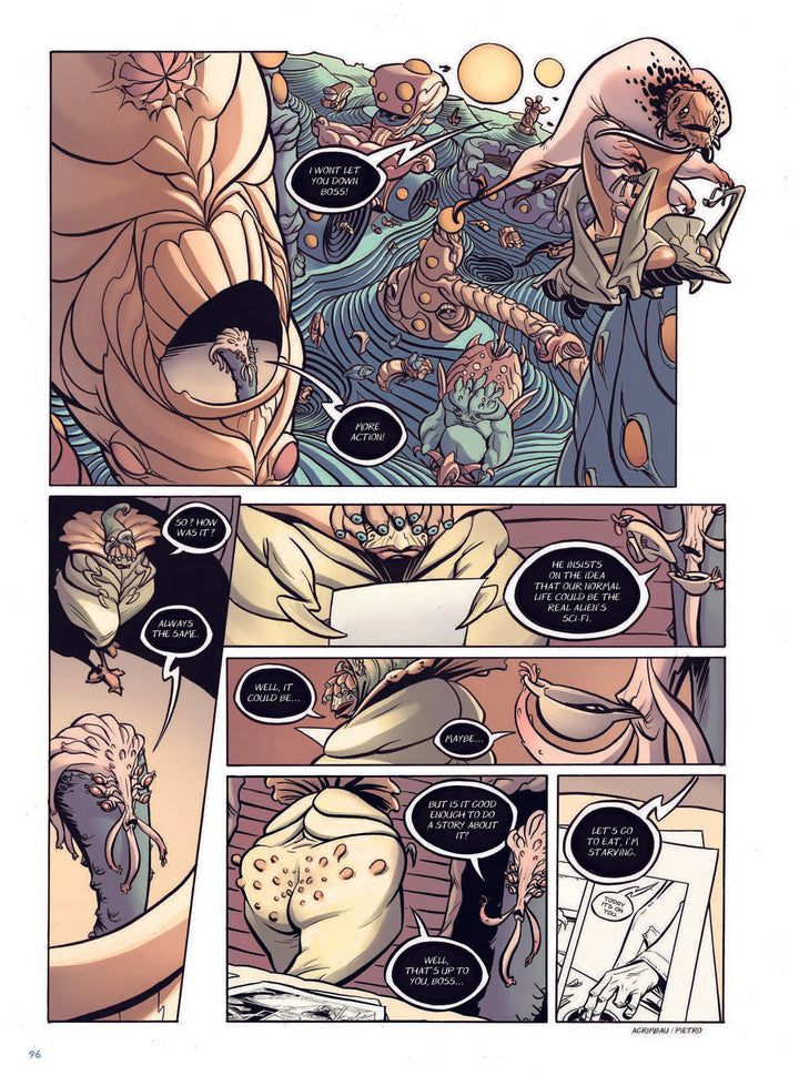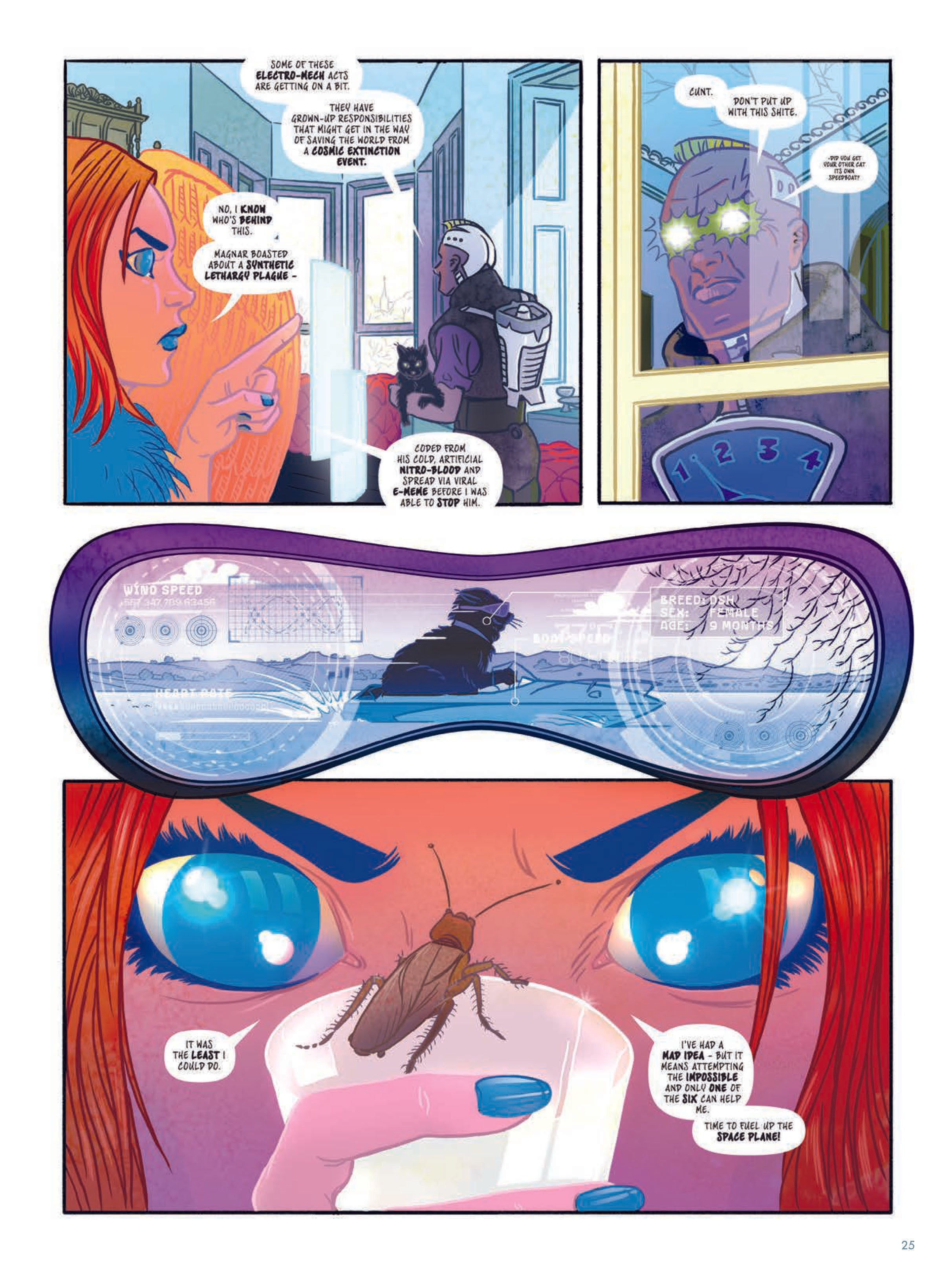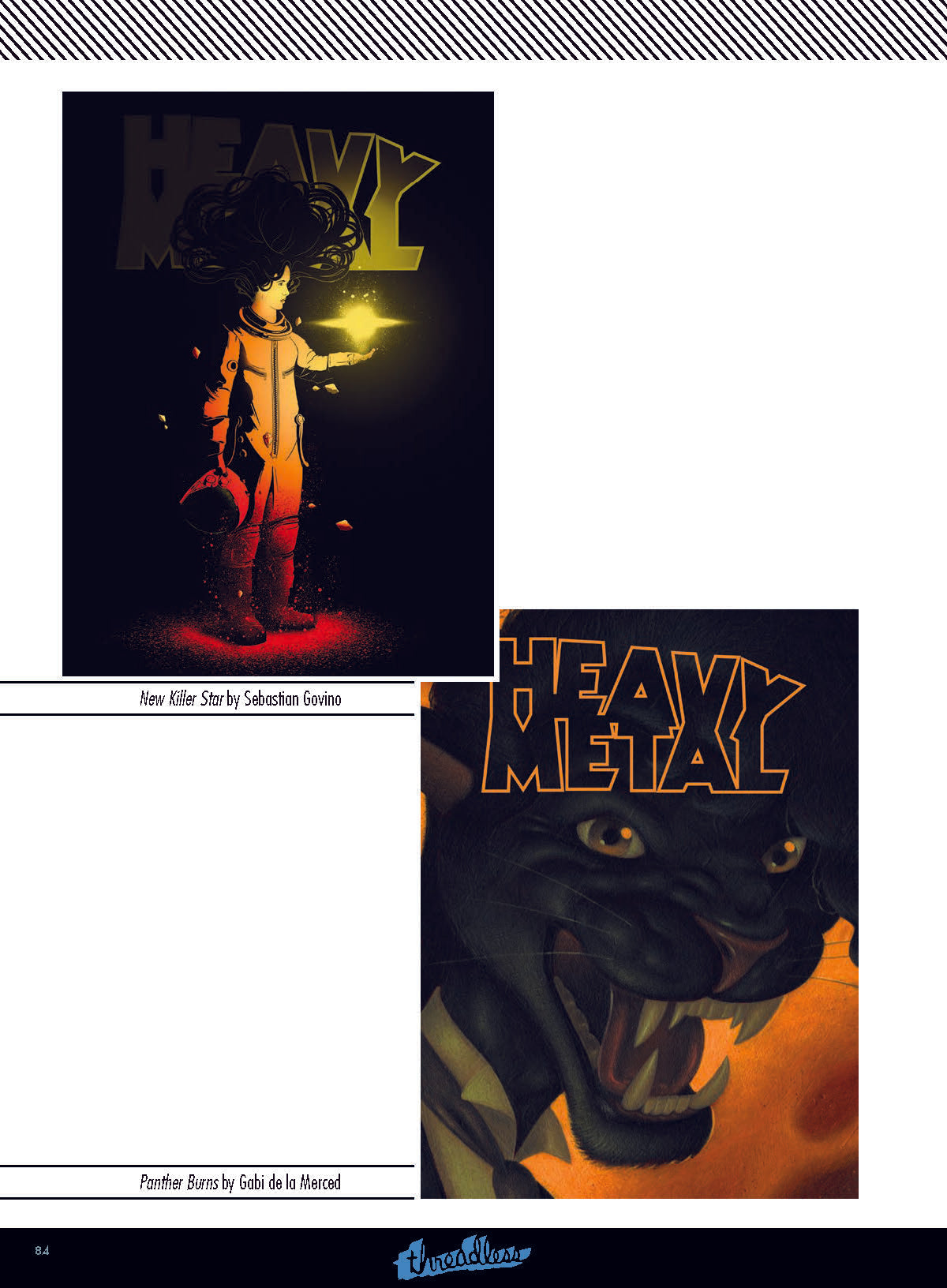 Continuing his run as Editor-In-Chief, Grant Morrison serves up another edgy story and a cast of world class writers and artists in this Sci-Fi themed issue. Grant Morrison teams up with artist Rian Hughes for a twister sure to entertain, Mozchops SALSA INVERTEBRAXA continues to thrill and this is all behind covers designed by the winners of Heavy Metal and Threadless' Design Challenge to find the next great Heavy Metal Cover Artist!