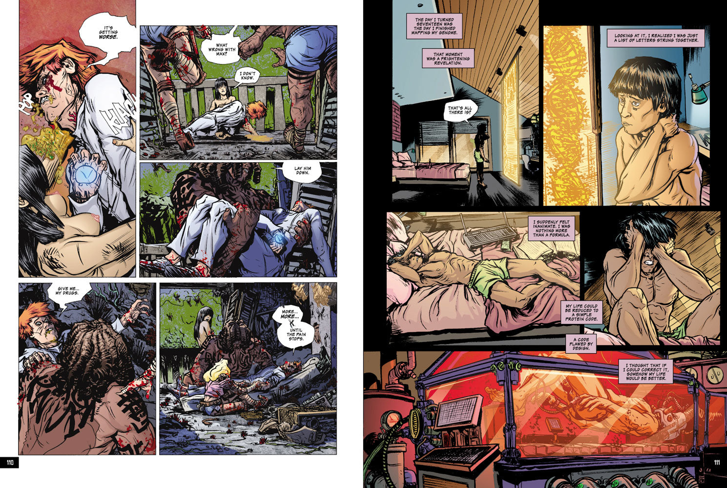 A superior named Nina is the test model for cutting edge genetic designs. She is a paragon of physical and mental health: her brain and body represent billions of dollars worth of corporate research and development. During a bio-terrorist attack, Nina is kidnapped by a street gang and taken across the border into a ghetto full of man-made splice animals, psychopathic hookers, drug addled freaks, deadly insects, poisonous ecosystems, and abandoned tenements.