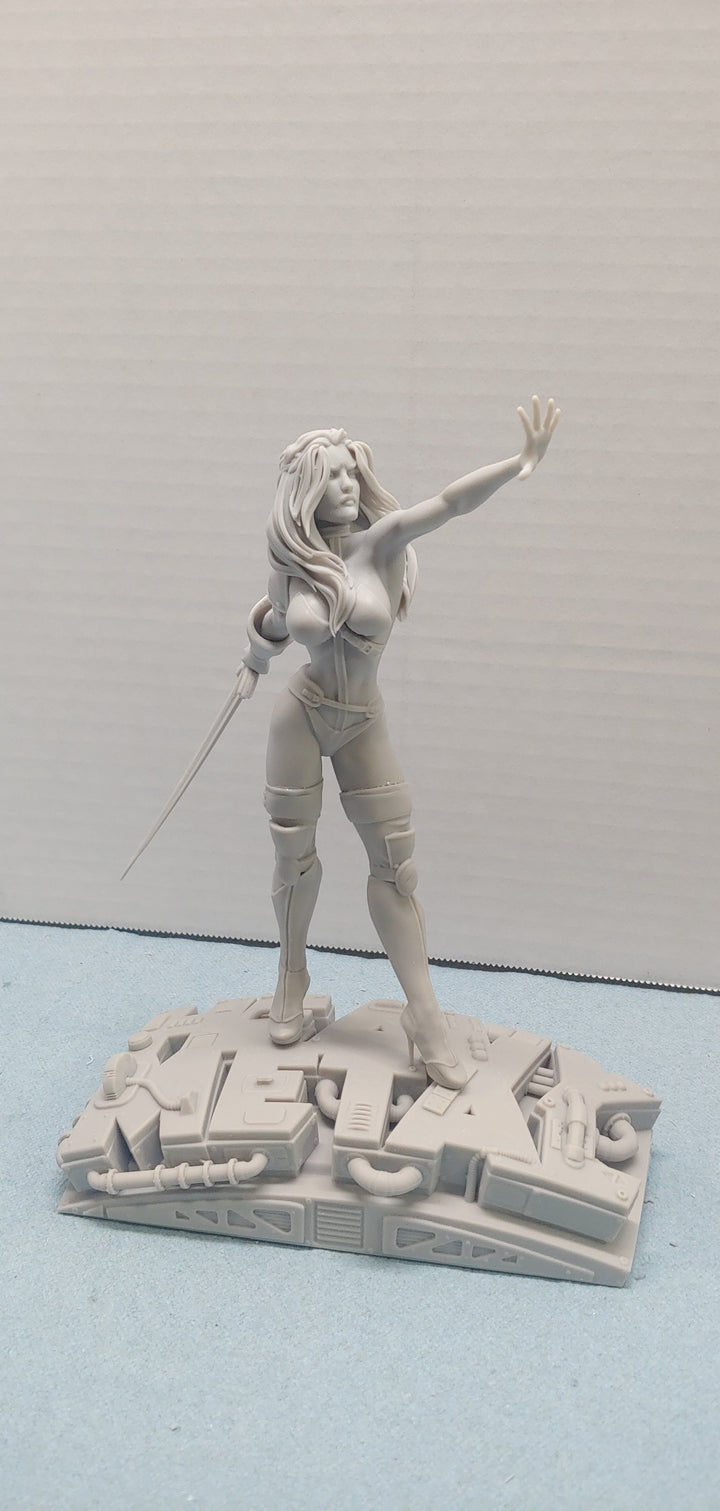 Welcome to The Forge! Heavy Metal is Proud to present this epic Unpainted resin Kit of Taarna. Collect and paint this epic last Taarakian for your collection today. In this model you will receive a spaceship logo base to place her on as she wields her sword toward the sky.